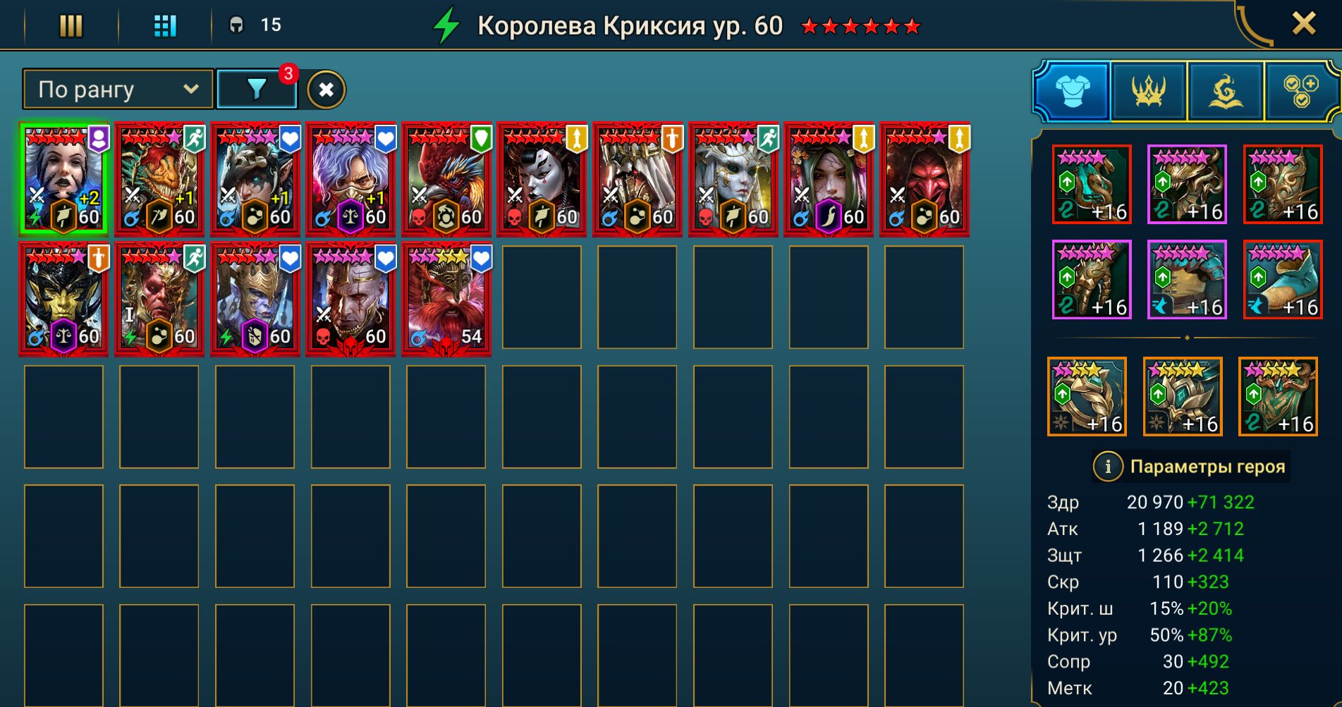 - Указанное количество легендарных и эпических героев